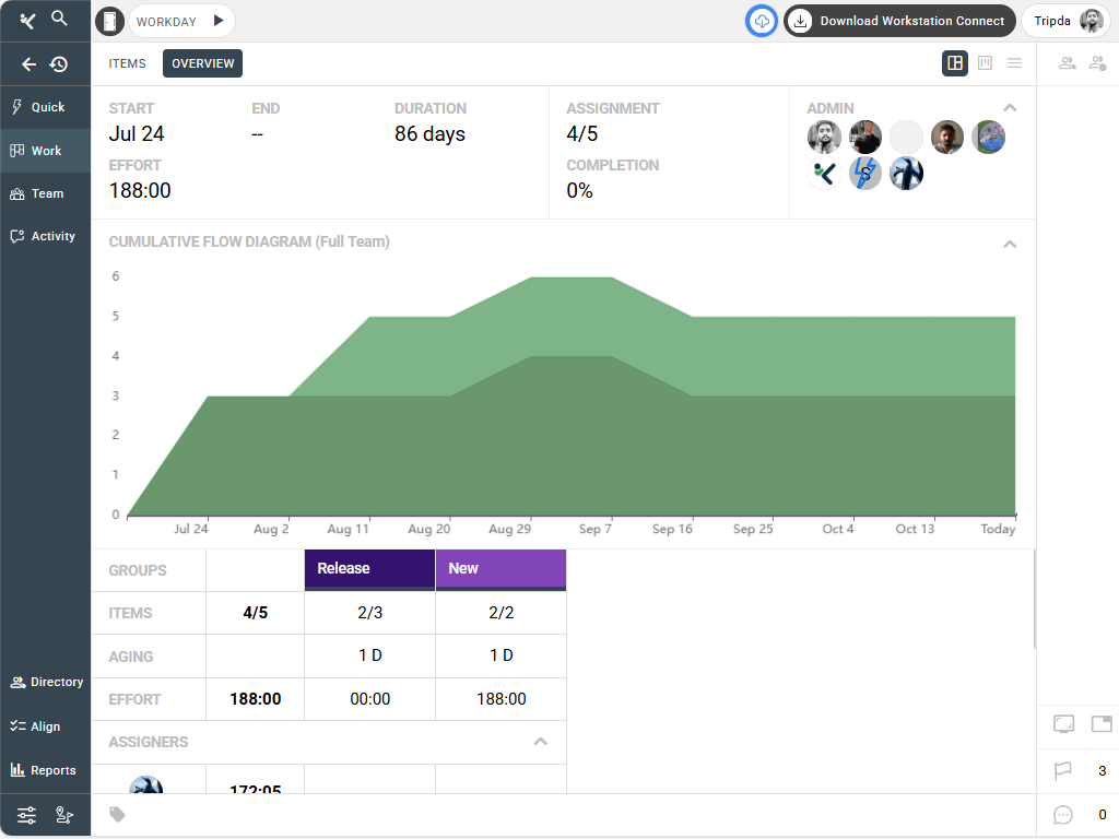 - It visualizes workflow stages through the Cumulative Flow Diagram for better process monitoring.